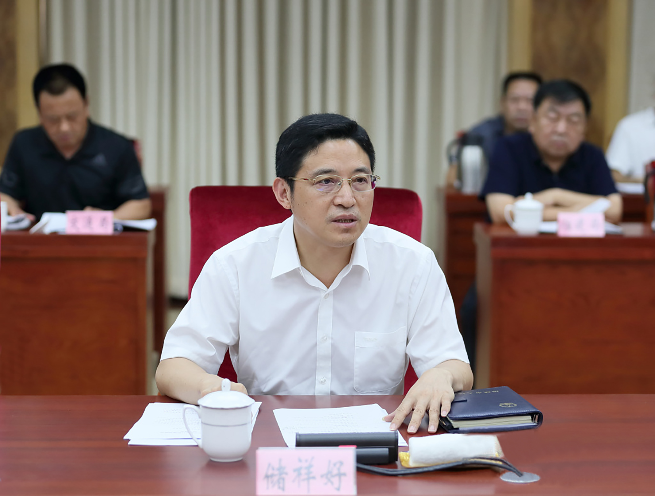 ▲市長褚祥好主持會議并講話