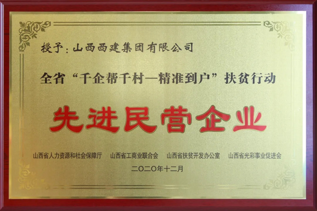 摘要:12月10日,在太原召開的山西省工商聯(總商會)十二屆七次常委會議暨全省“千企幫千村——精準到戶”扶貧行動先進民營企業表彰大會上,山西西建集團榮獲“千企幫千村——精準到戶”扶貧行動先進民營企業榮譽稱號。