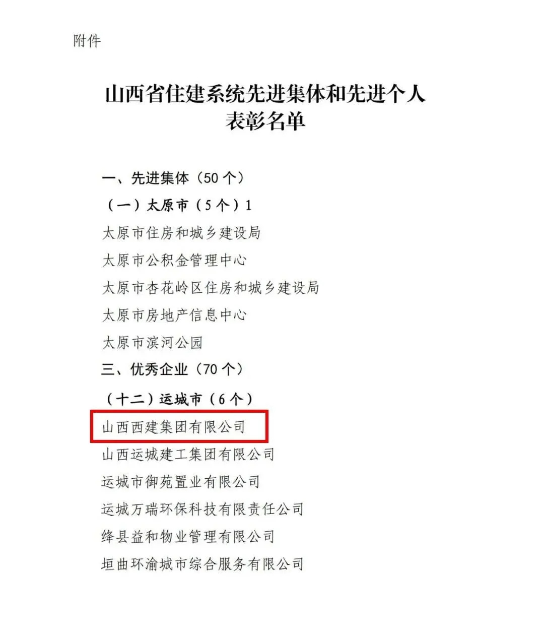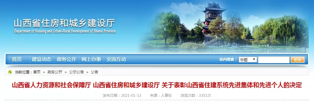 2021年1月13日,山西省人力資源和社會(huì)保障廳、山西省住房和城鄉(xiāng)建設(shè)廳,在《關(guān)于表彰山西省住建系統(tǒng)先進(jìn)集體和先進(jìn)個(gè)人的決定》中,西建集團(tuán)被評(píng)為“山西省住建系統(tǒng)優(yōu)秀企業(yè)”。
