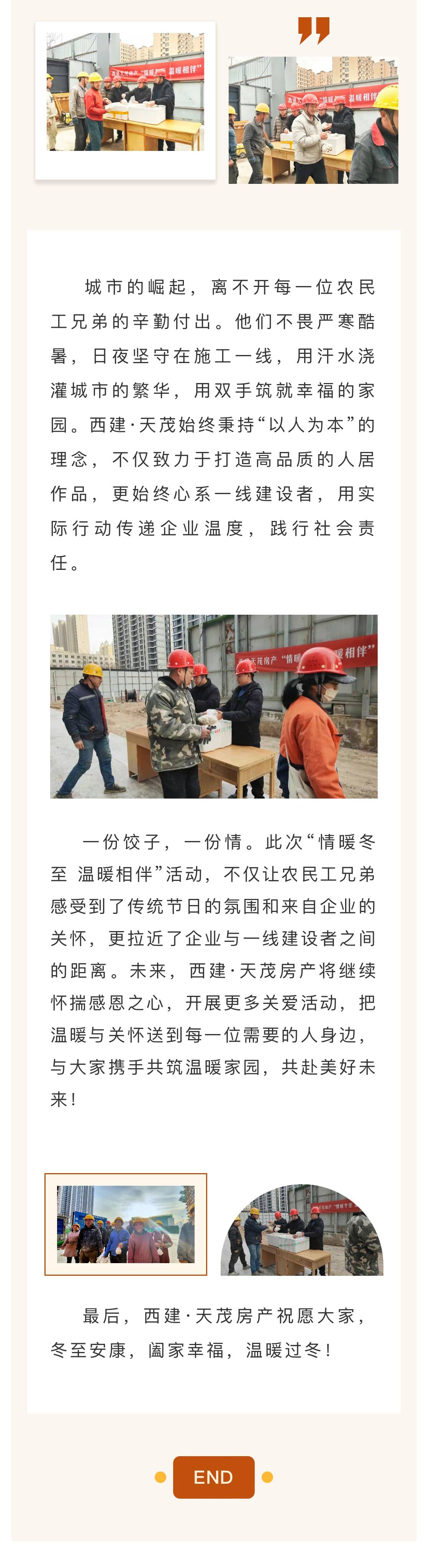 情暖冬至 溫暖相伴 | 西建·天茂房產冬至慰問農民工,致敬城市建設者!
