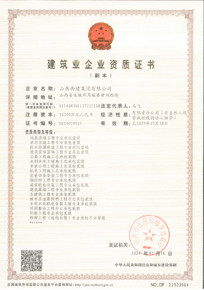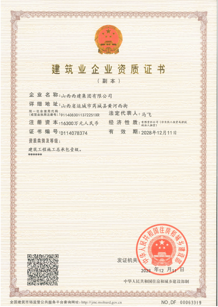 建筑施工總承包壹級資質